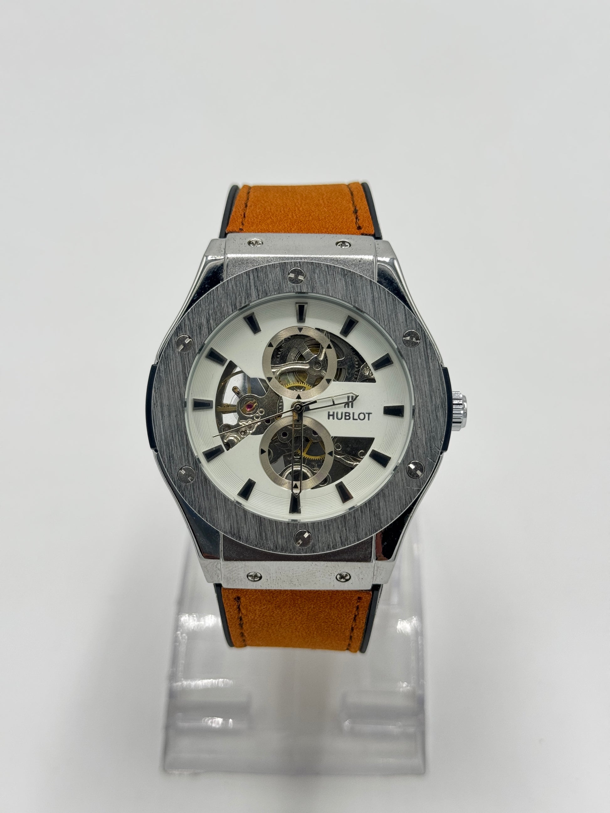 Hublot Automatic Skeleton – Silver Case with Tan Leather Strap